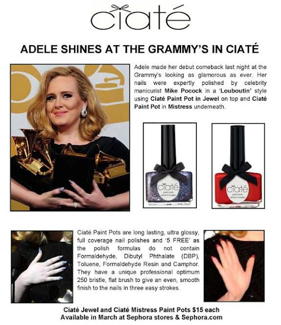 How amazingly beautiful did Adele look last night? And more important ~ How GORGEOUS were her nails?! Want to create that look? Look no further! This brand is extremely hard to find in the U.S.. I can’t wait until it hits Sephora in March!