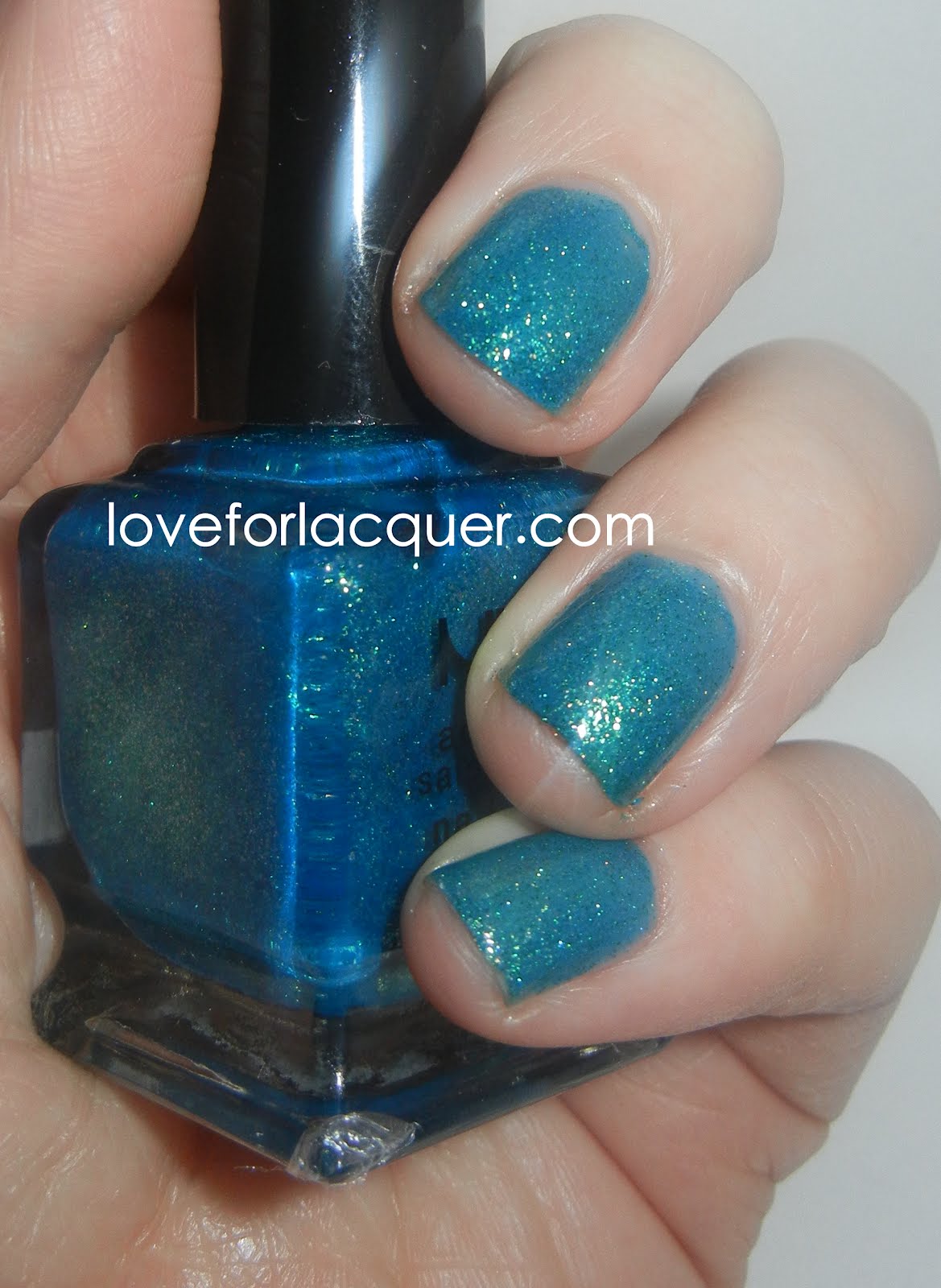 Bejeweled is the same consistency of Emerald Forest.. except this is obviously blue. The different colors in the bottle definitely come out on the nail.. and that’s a huge plus. Way to go NYX! This color kind of reminds me of a mermaid & the ocean for some reason. Don’t judge. :p