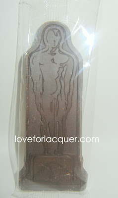 A chocolate Oscar! I’m actually still surprised at myself that this is still in the plastic in one piece. That will most likely change after I’m done with this π