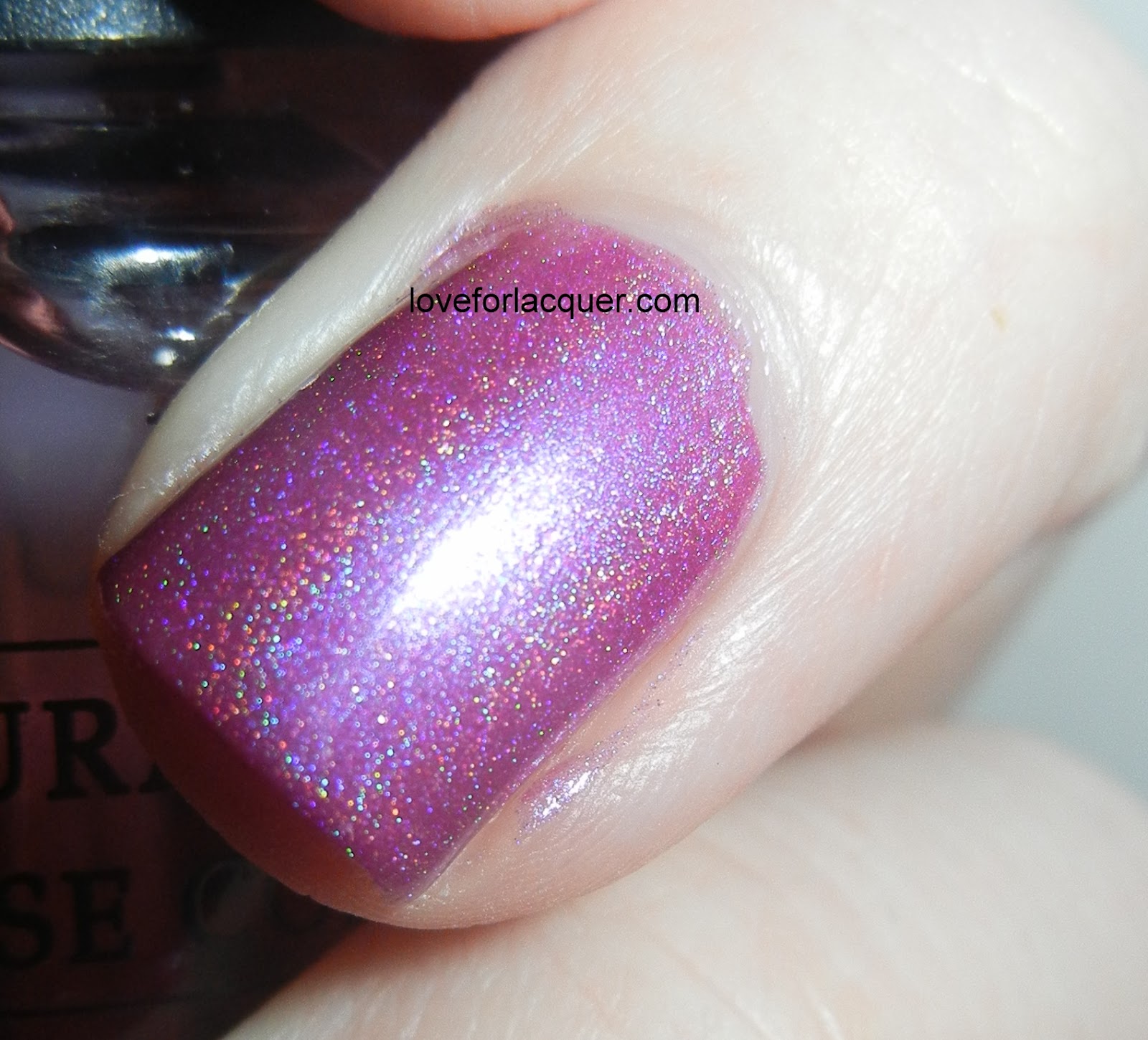 Look at those babies shine! So the glitter in them is a mixture of pink, purple & silver. After I posted these, one of my amazing fans, Liz, who has just started making her own polishes offered to create one especially for me! I was flattered! So she went to work and this is what she came up with. I couldn’t be more in love with the result.