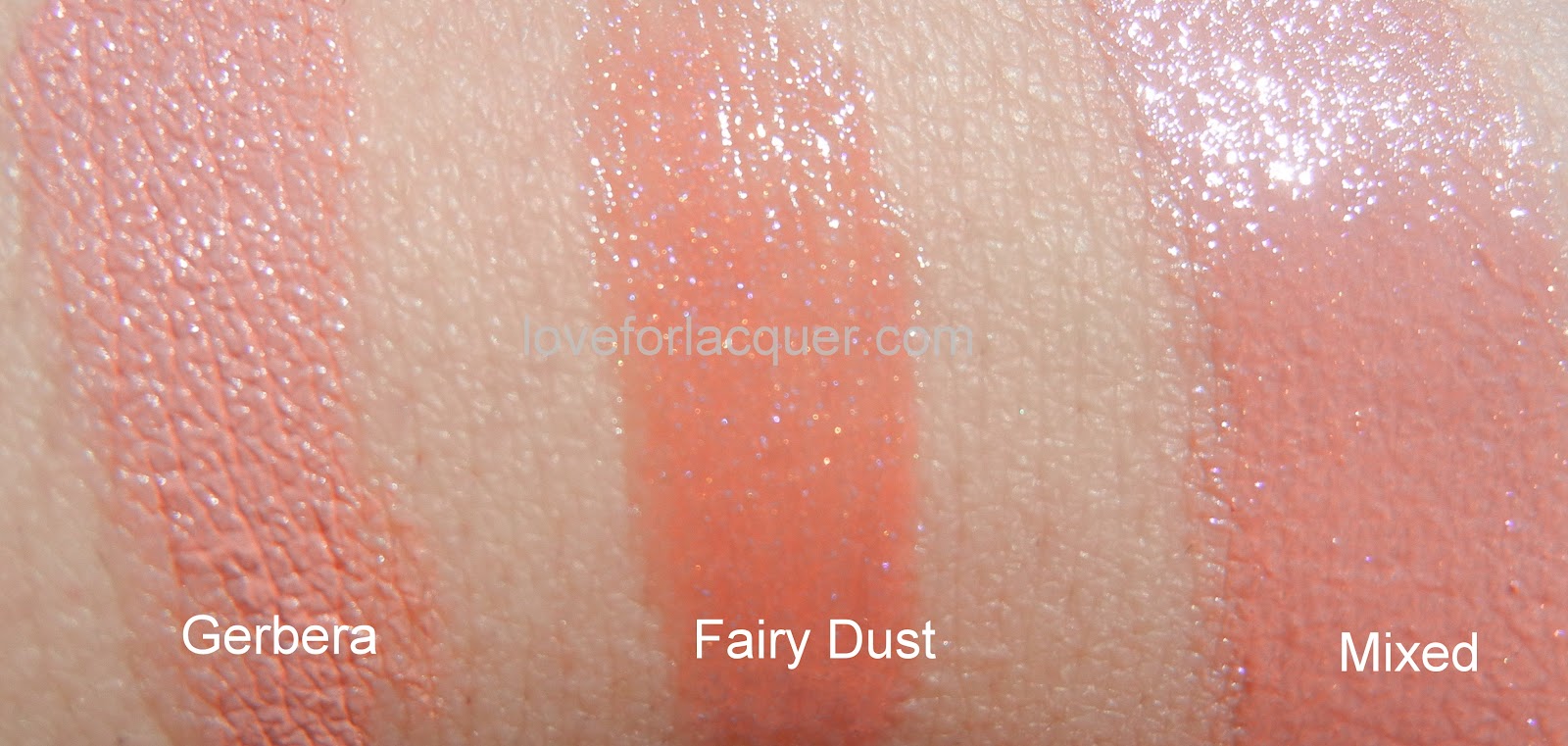 L-R ~ Gerbera (On it’s own), Fairy Dust (On it’s own) & Gerbera & Fairy Dust (Mixed)