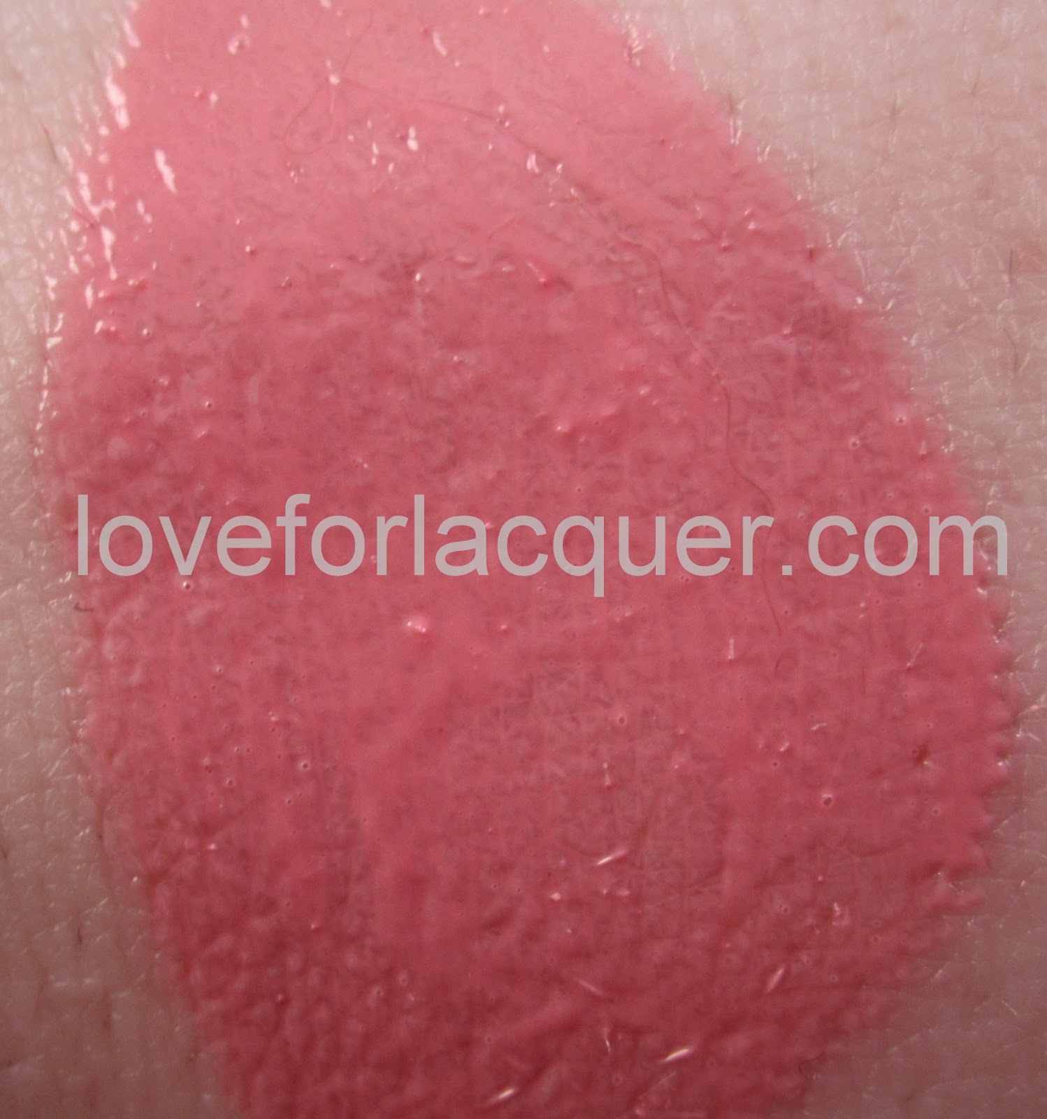 Snog – Described as a bright, happy hot pink. And they couldn’t be more right! I am absolutely in love with this color. And the fact that there’s a matching lipgloss to match? WINNING. Two coats are shown below.