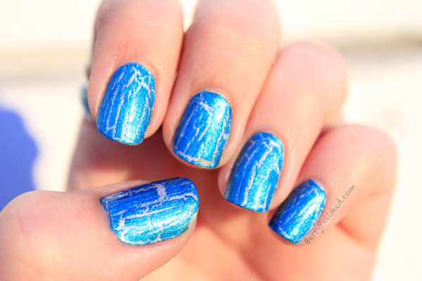 Hello to my Berry Patch and hello to the readers of Love for Lacquer! I am very excited to be writing my very first guest post π I want to share a little trick I sometimes use when I have a chipped manicure and I am either feeling too lazy to break out the nail polish remover and start over, or when I am going out and don’t have time to do a new manicure. My secret quick fix is to apply a layer of shatter nail polish right over the old, chipped manicure!