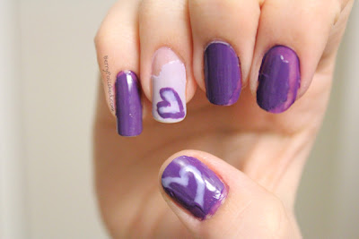 If you are feeling really lazy, the next step is to just apply a quick layer of top coat over your old manicure (the shatter doesn’t work well on naked nail).  If you feel like you can make a little more of an effort – patch some of the chips with the color of your original manicure like this: