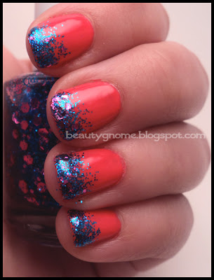 See? Not hard to do at all. It may take a few tries just to get the hang of it, but I think that goes for most nail art techniques. This is a fun look for Summer and a great way to use the dozens of glitter polishes you have covering your kitchen table, desk, and most other horizontal space in your house. Wait, is that just me?