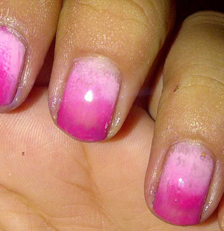 The last Pinterest idea I’ve been wanting to try is the ombre trend using a triangular makeup sponge. I know, I know ombre has been a trend for a while. I’m my opinion though, it NEVER gets old. You can always change it up, use different colors, different styles of ombre. Even some polish companies now are making ombre sets you can buy! All you have to do for this design is paint a thin strip of the darkest color at the edge of the sponge and work your way up to the lighter color above your first strip. I only used three colors because I’m still new at it, but I love the way that it ended up turning out.