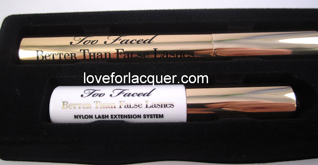 And once you open it up, you will see a black velvet box complete with your tools. The gold tube is step 1 & 3 and will act as your top and base coat. The small, white tube contains the exclusive Flexistretch nylon fibers. I LOVE the packaging of these tubes. They are so chic and gorgeous!