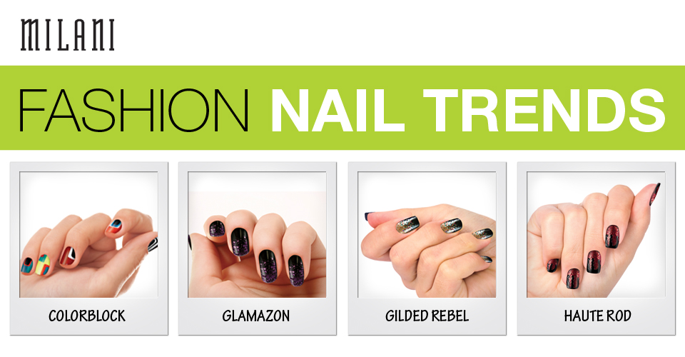 Happy Wednesday! A few weeks back, Milani contacted a few bloggers and asked them to recreate 4 nail trends using only Milani lacquers. I hesitated at first.. only because I am not the best at nail art. We all know that. But I figured I would give it the old college try! And I have to say, I am SO glad I did it. It was a challenge for me.. but it really helped me to step outside of my box and experiment. So THANK YOU Milani for giving me the chance! The picture below were the 4 looks we had to recreate. They didn’t have to be exact.. Just inspiration.