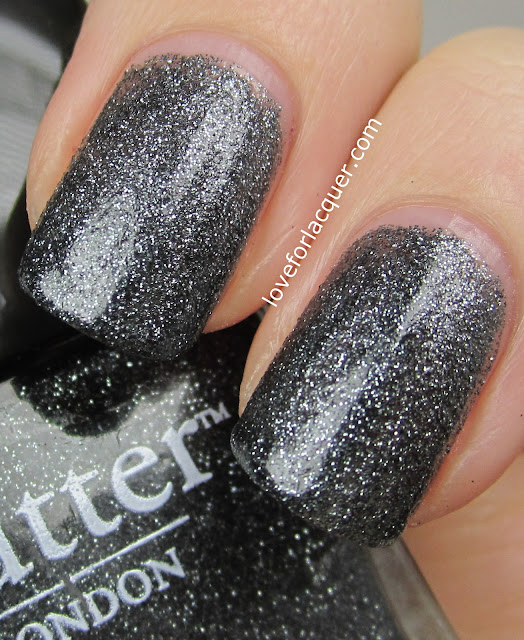 Gobsmacked – Grey & Silver glitter packed in a dark charcoal base. This is probably my favorite from the collection. Formula was outstanding and it only took 2 coats to be opaque.