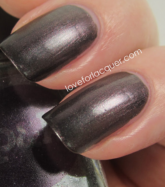 Magic Stick – This was SO hard to capture – It’s a duo chrome with brown, green & purple. It’s definitely unique! Photo below shows two coats.