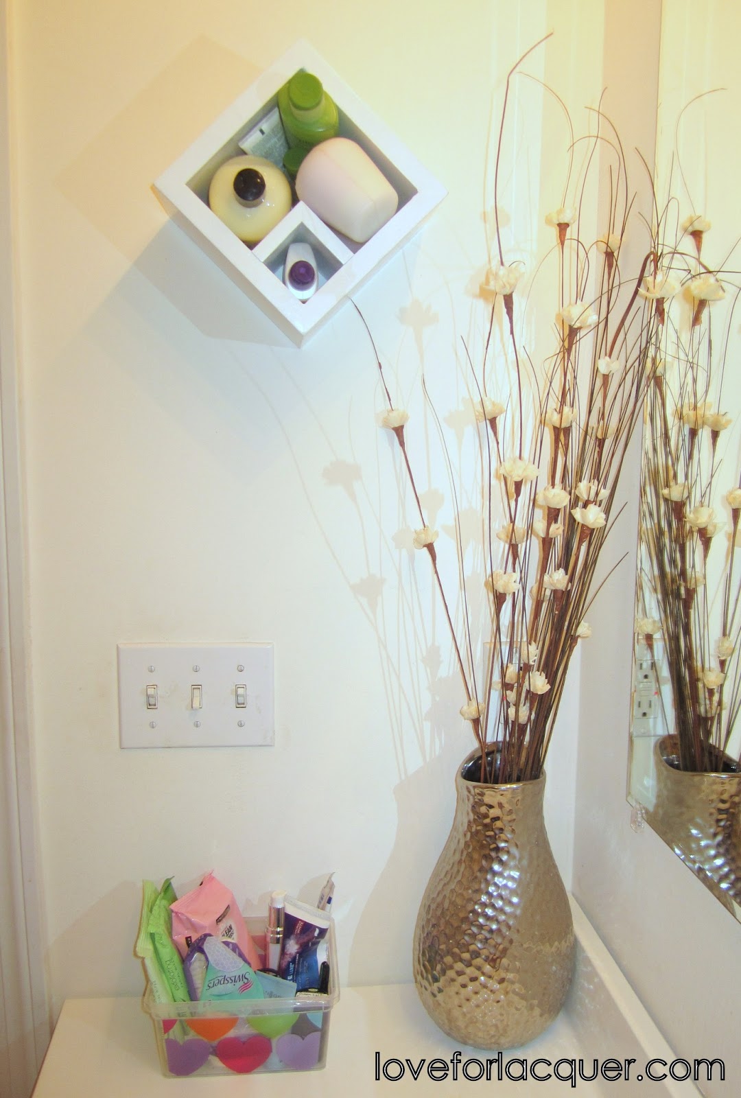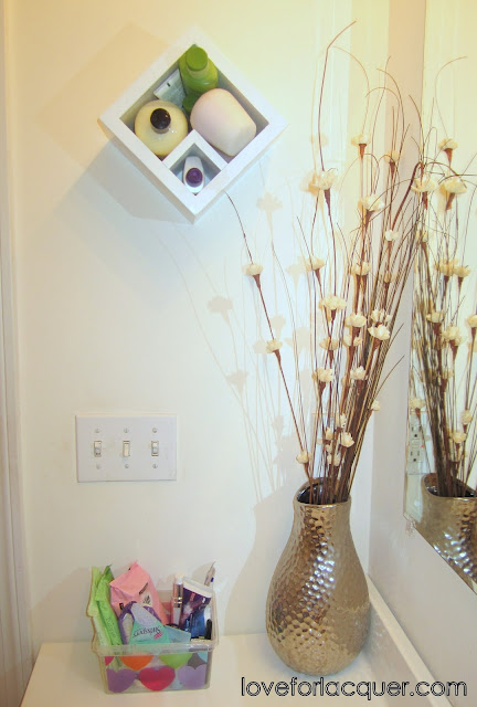 I absolutely love the way the Diamond Shelf looks in my bathroom. It is so handy and like I said, can fit a TON of stuff! You can also use this for makeup, makeup brushes, ect.