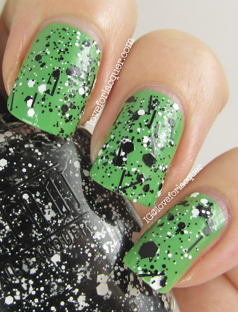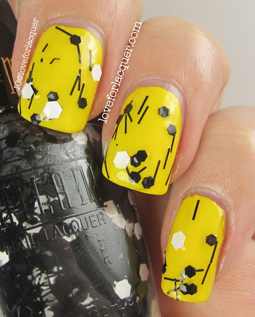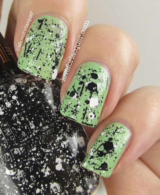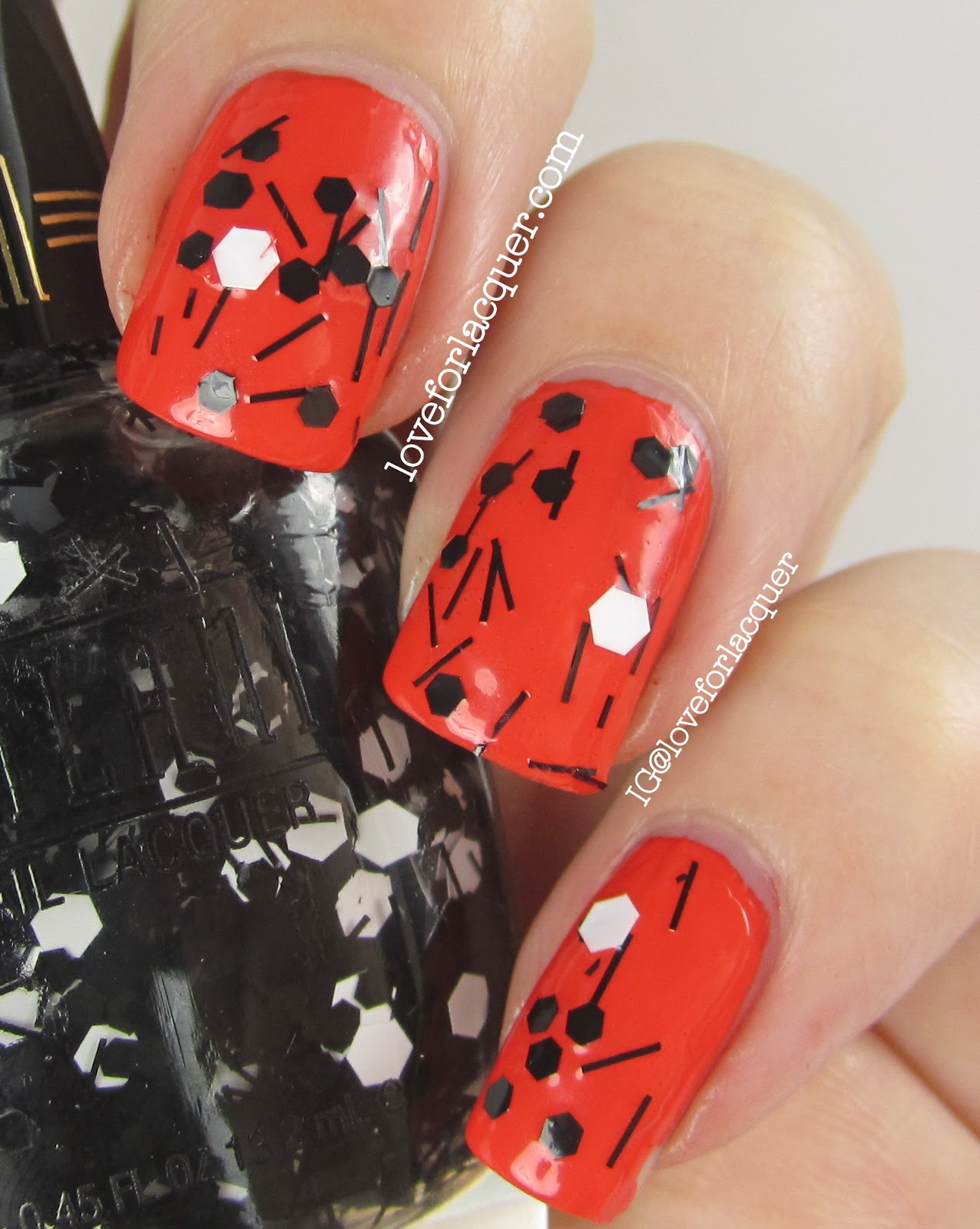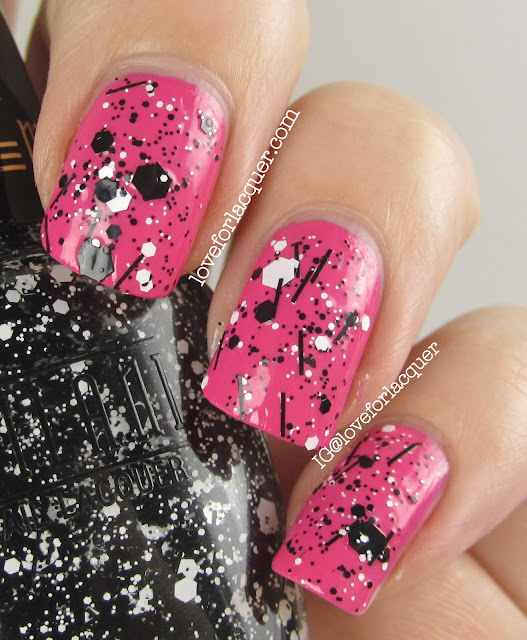 Sprinkles – I’ll only write about this one once – The microfine black & white glitters were a breeze to get out of the bottle and apply on the nail. I’m not one for bar glitters, but I like how it looks with the small glitter combo!