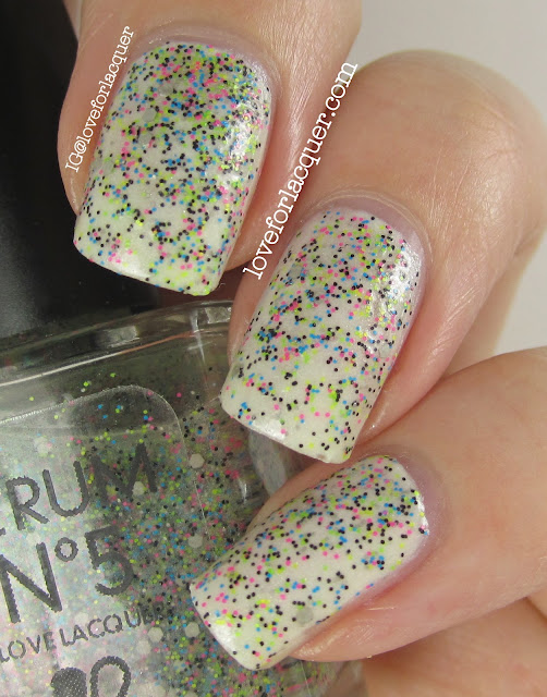 Lei Down The Law – This is a bright neon glitter mix that looks absolutely stunning on the nail and applies flawlessly! I have it layered over China Glaze Dandy Lyin’ Around.Photos below shows two coats.