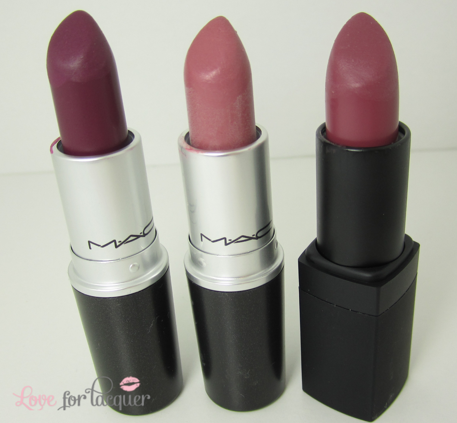 Lipsticks in MAC Rebel, MAC Syrup & NARS Damage