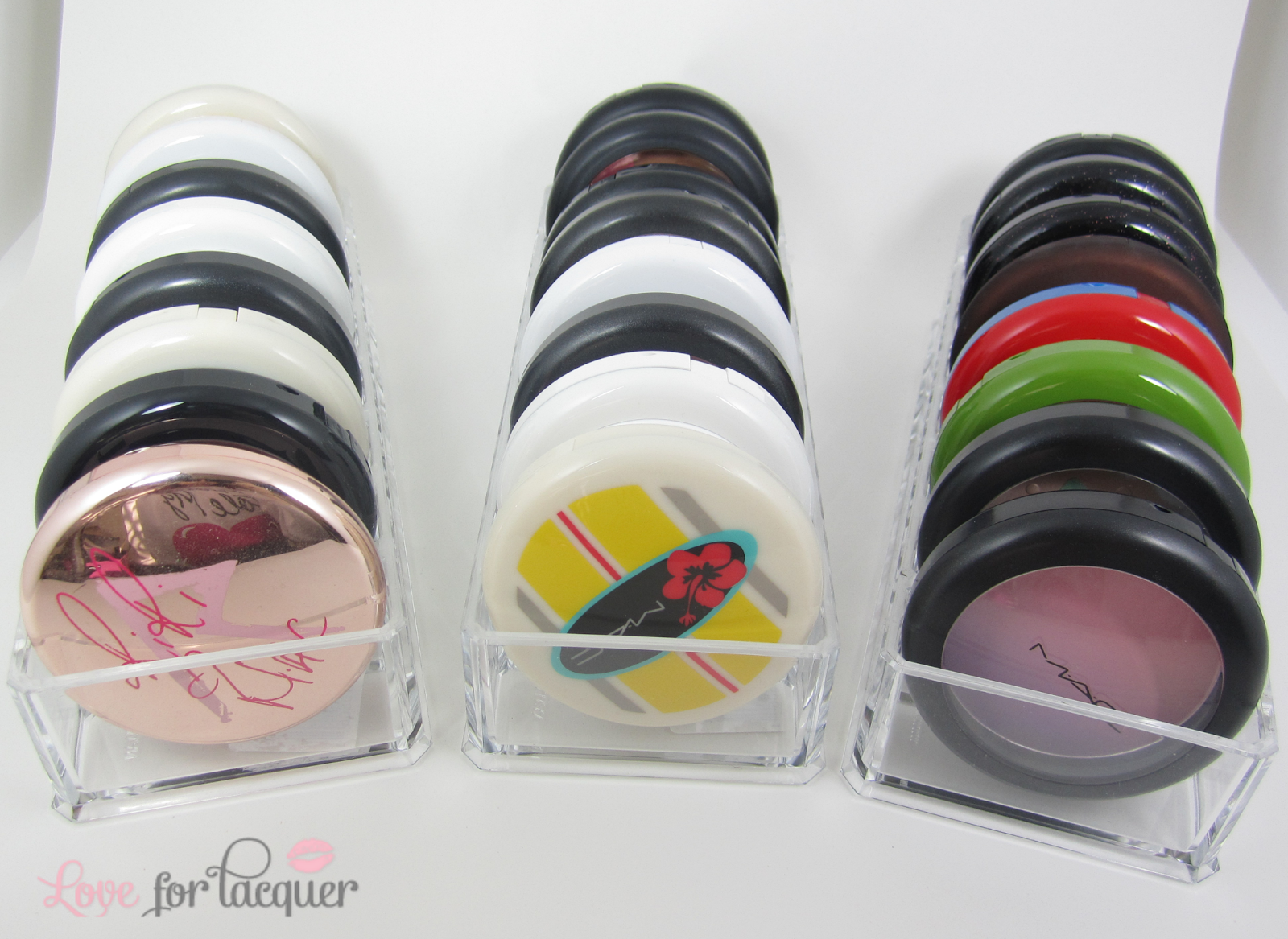 Just like their lipstick holders, the compact organizers are made out of high quality heavy duty acrylic and are absolutely a life saver! I was so shocked at just how many different brands I could fit in these! Above you will see just a fraction of my MAC Compact products (Beauty Powders, MSF’s ect) These fit pretty snug, but you are still able to make it work!