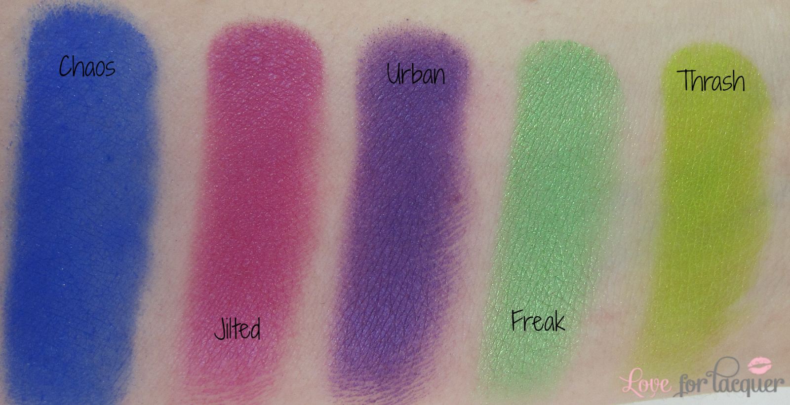 These shades are incredibly vibrant and highly highly pigmented. I have yet to test any of these shades on my eyes as I just received this palette yesterday, but when I swatched them on my arm I was seriously amazed. Usually neon shadows are very dry and lack color, but these are far from it!