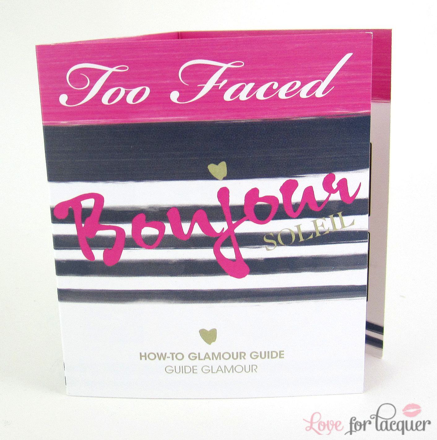 The packaging is very sturdy – It comes in a fairly large tin much like the Chocolate Bar palette. And as always, you get a Too Faced Glamour Guide to teach you how to get the perfect bronzed face!