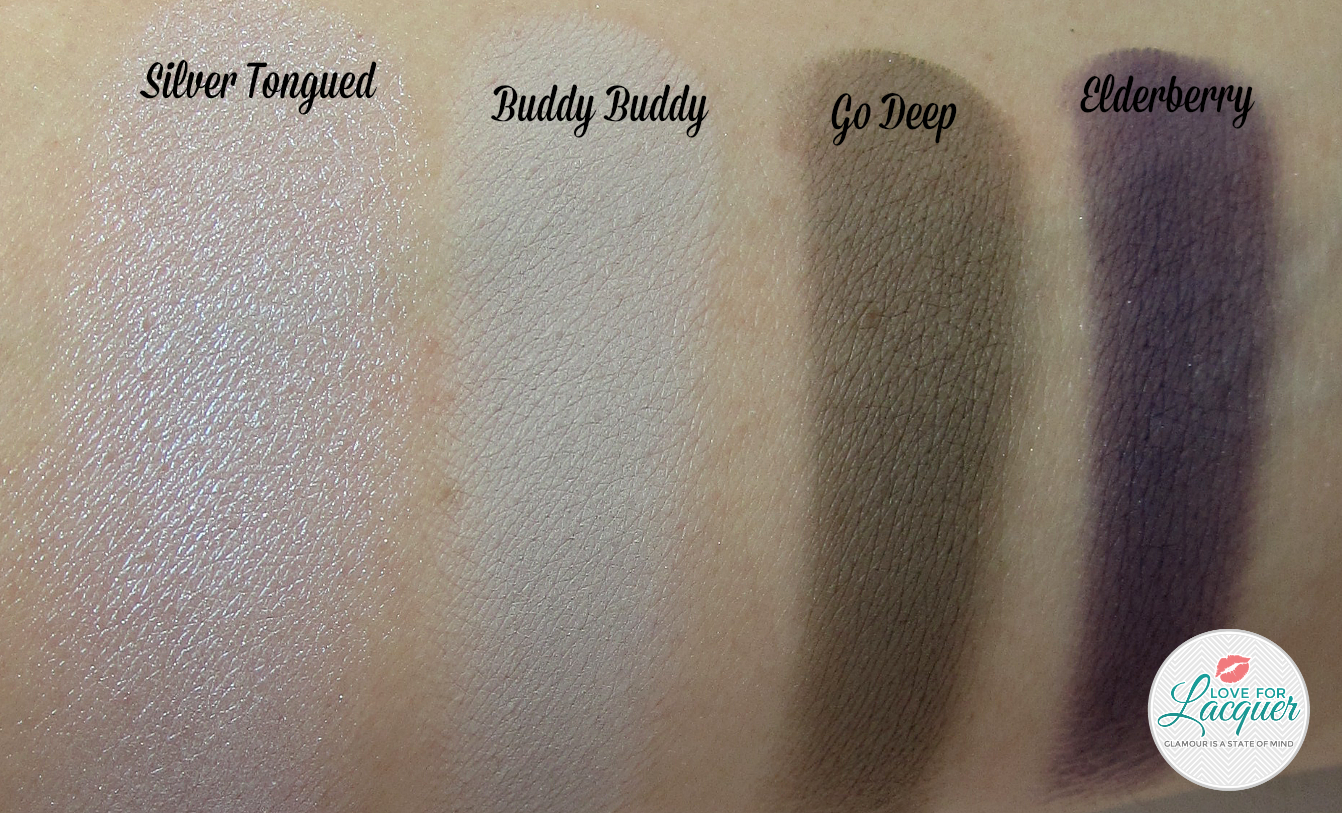 Definitely one of the stars in the collection, is the brand new Fall Softly eyeshadow palette. I love how soft these shades are and they compliment the rest of the collection so well. The shades swatched VERY lightly onto my skin (Probably because I’m incredibly pale), but these are going to look amazing with a Fall dark lip. I tend to keep my eyes neutral during the Fall so I can rock those deep vampy colors and this palette is definitely going to be a staple in my collection.