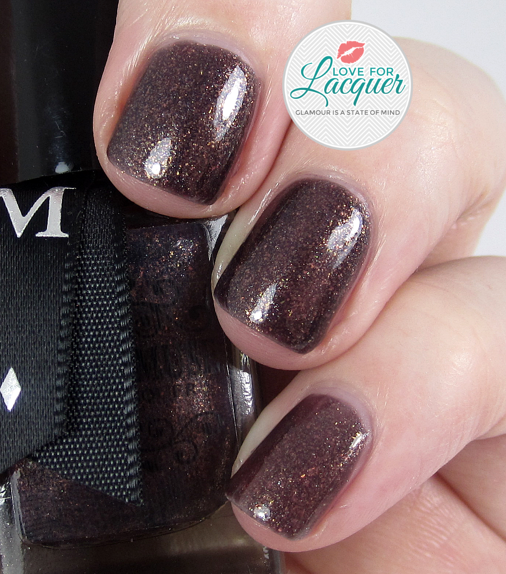 Vintage Copper – Described as classic copper glitter top coat. Such a gorgeous glitter! So chic and sophisticated. Photo below shows two coats layered.